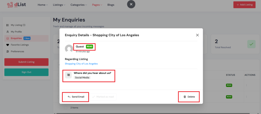 Once you add a FormGent form to your listing layout, it becomes part of the live listing page. Listing owners can receive and manage responses directly from their dashboard.