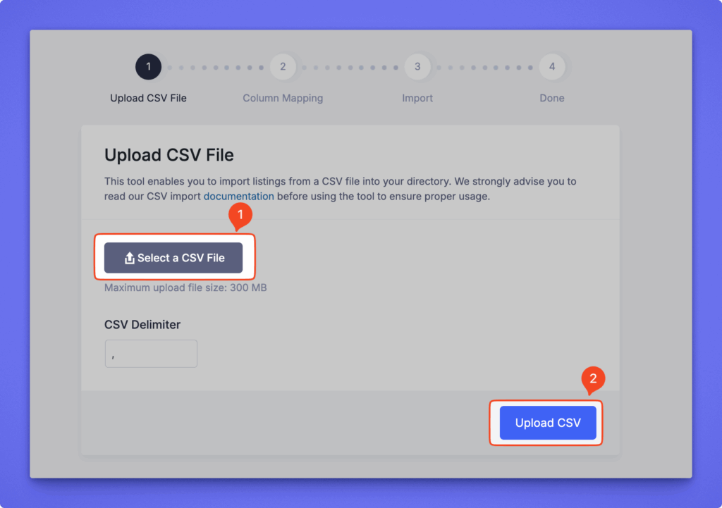 The CSV Import/Export lets you manage large volumes of listings efficiently. You can bulk upload thousands of listings at once, migrate data from another site, or back up your existing listings in just a few steps.