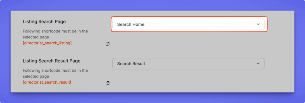 These settings are found under: Directorist → Settings → Search → Search Listing