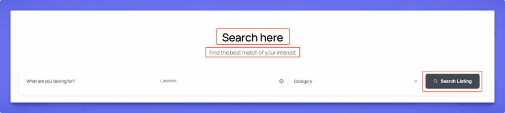 The Search Listing Settings control how the search section appears and functions on your directory’s search results page. In Directorist, search behavior is divided between two configuration areas: Global Settings and the Directory Builder, each responsible for different parts of the search experience.