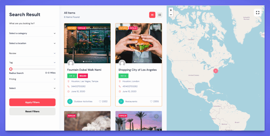 - List View – Displays listings in a vertical stacked layout.