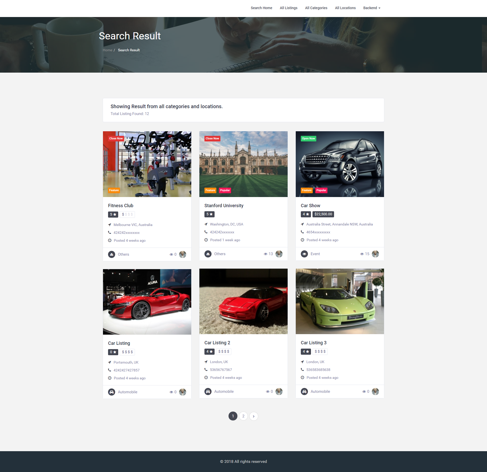 Example: [directorist_search_result listings_per_page=”6″] - featured_only: Display only featured listings in the result. Options available: yes | no.
