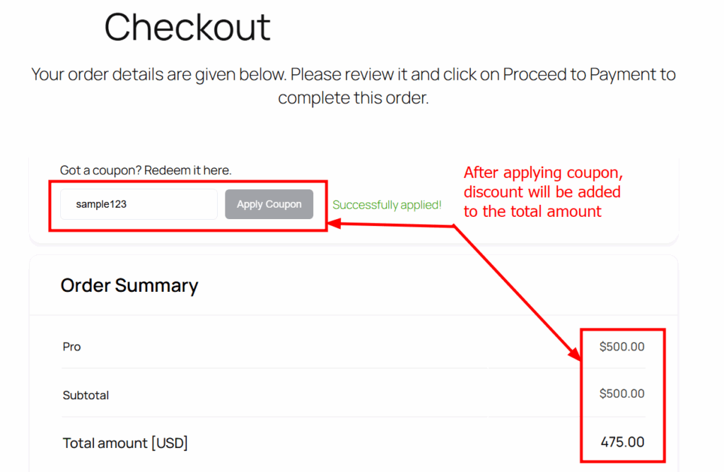 - Example: If the coupon amount is set to 5% and a user purchases a $100 plan, the system will deduct $5, making the final price $95.