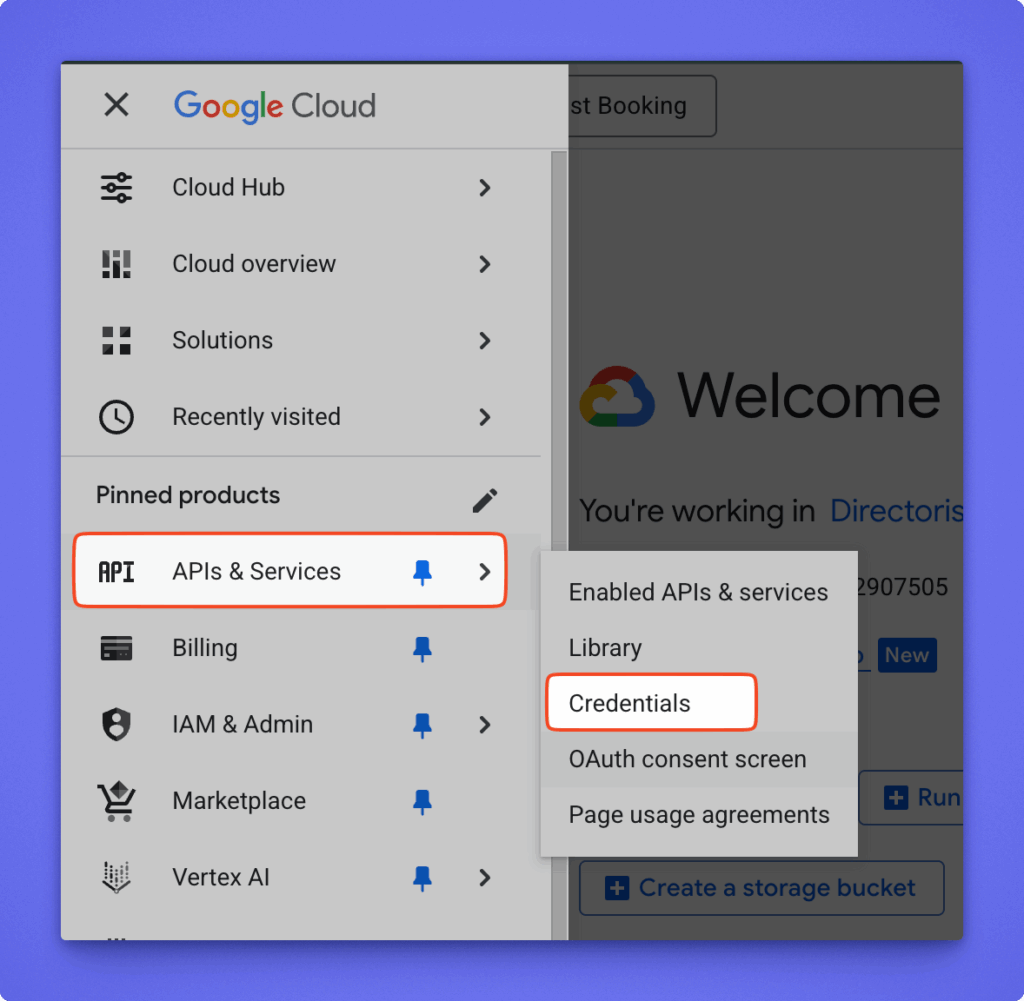 - Go to Google Cloud Console and sign in with the same Google account you use for bookings.