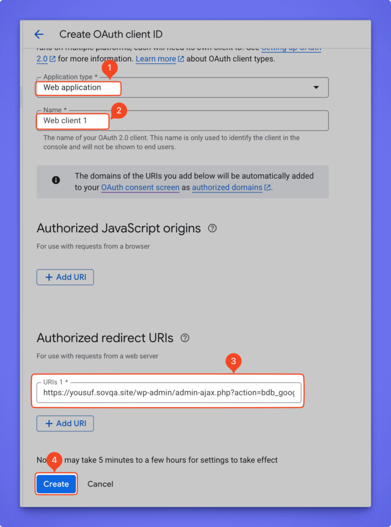 - Create an OAuth client ID:
