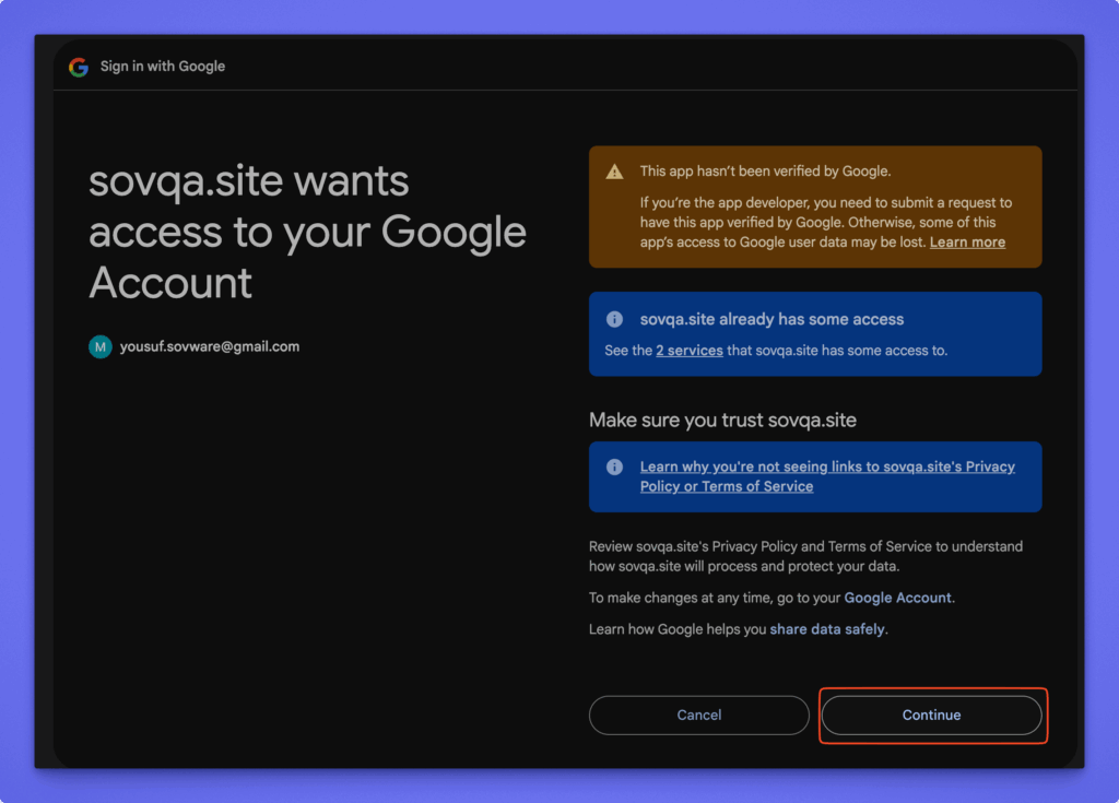 - Click Connect, then approve the permissions in the Google pop-up.