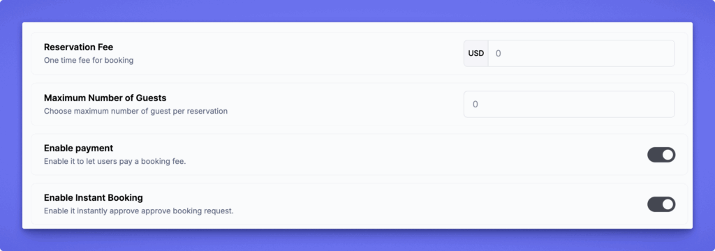 Turn this on to activate rental booking for the listing.