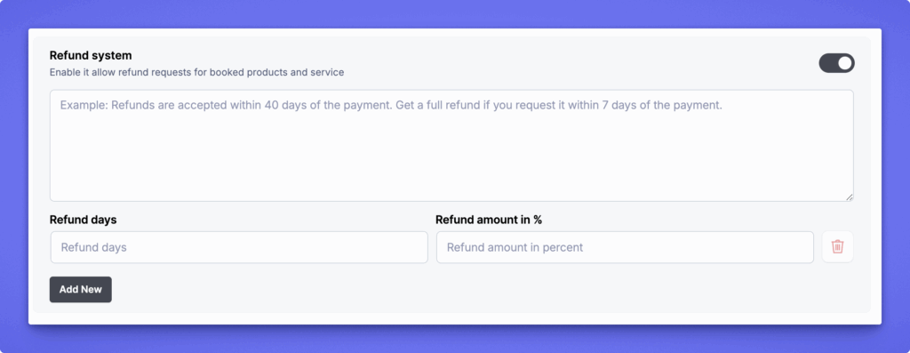 Turn on the refund system if you want to allow refund requests for booked services.