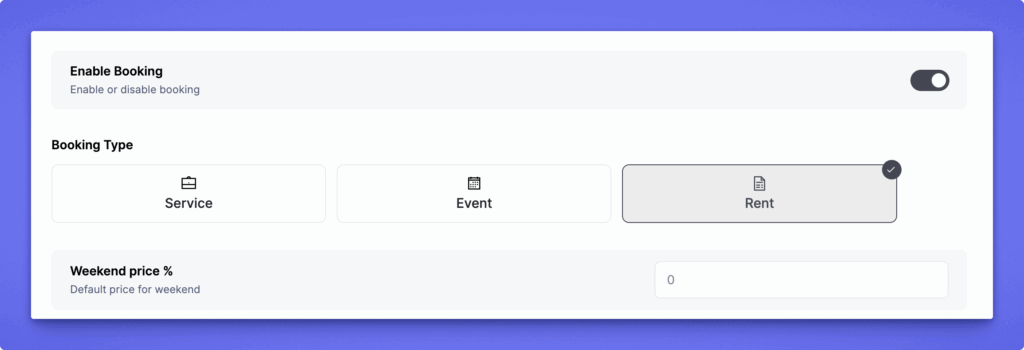 Rental Booking is designed for listings where customers need to book a property, vehicle, equipment, or space for a specific date—such as vacation rentals, car rentals, tools, venues, or holiday cottages. This setup allows listing owners to manage daily availability, weekend pricing, and custom rates.