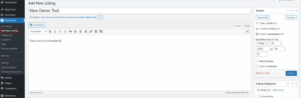 Install directory plugin to control listings, submissions and categories. In this tutorial, we are working with the Directorist which is a versatile system that has been developed to create customized style directory websites.