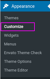From the Admin menu navigate to Appearance -> Customize link.