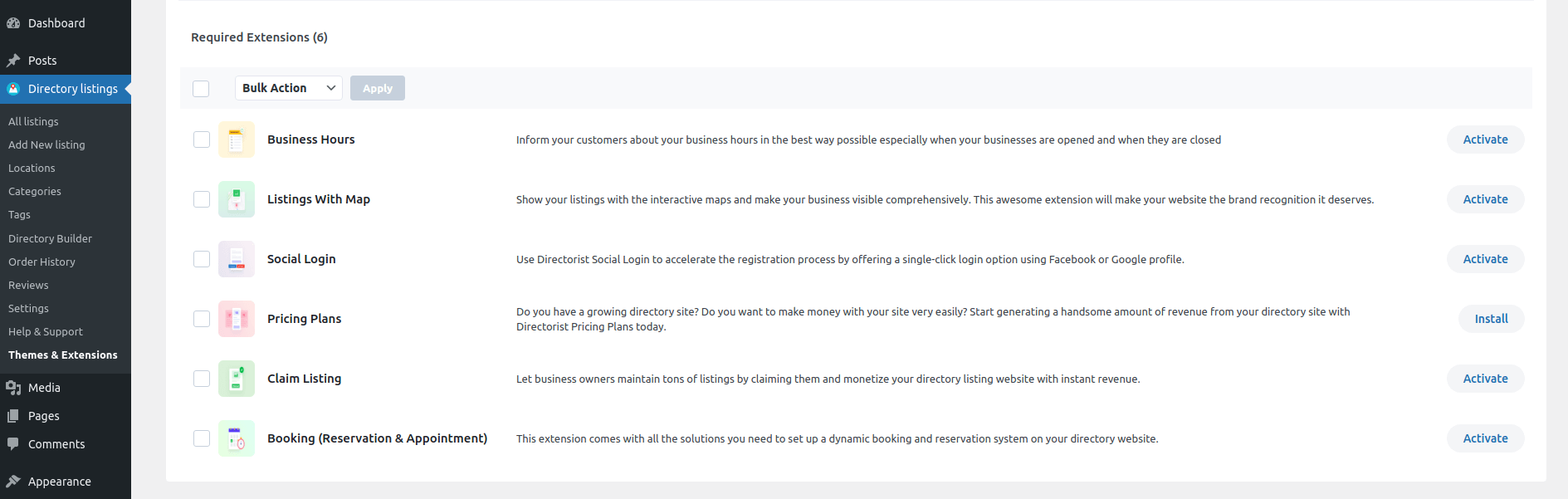 - From WordPress Admin Panel, Navigate to Directory Listings -> Themes & Extensions.