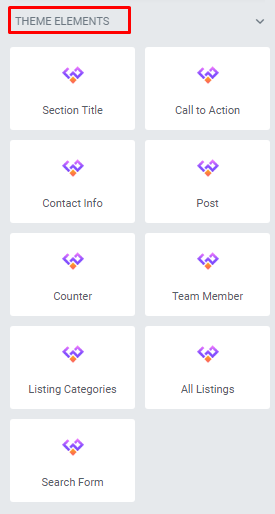 Elementor Page Builder has a lot of built-in widgets by default. But for your convenience, we’ve created several custom Elementor Widgets that you can use in your website and extend website functionality. You can find them under the THEME ELEMENTS section on Elementor edit mode.