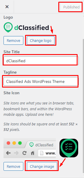 From there you can upload the “Site Icon” which will be used as a favicon.