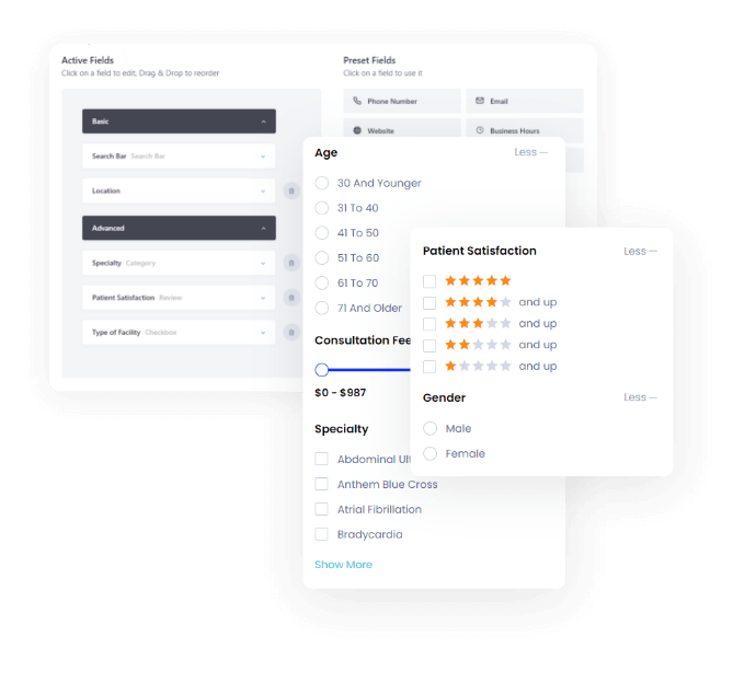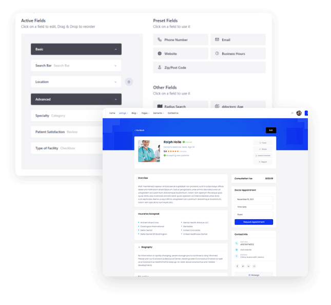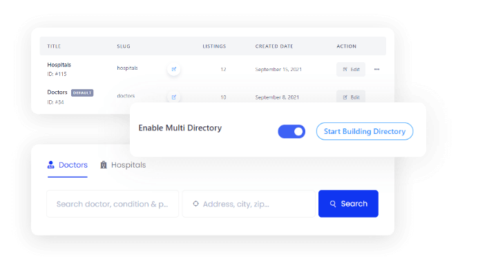 - Create unlimited hospital and doctor directory listings