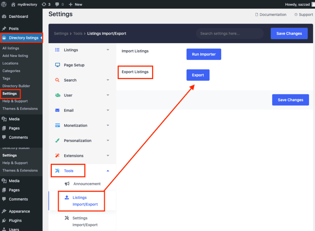 Step 1: Navigate to WP-Admin Dashboard → Directory Listings → Settings →Tools→ Listings Import/Export and click on "Run Importer" under the "Import Listings" to upload the CSV file.