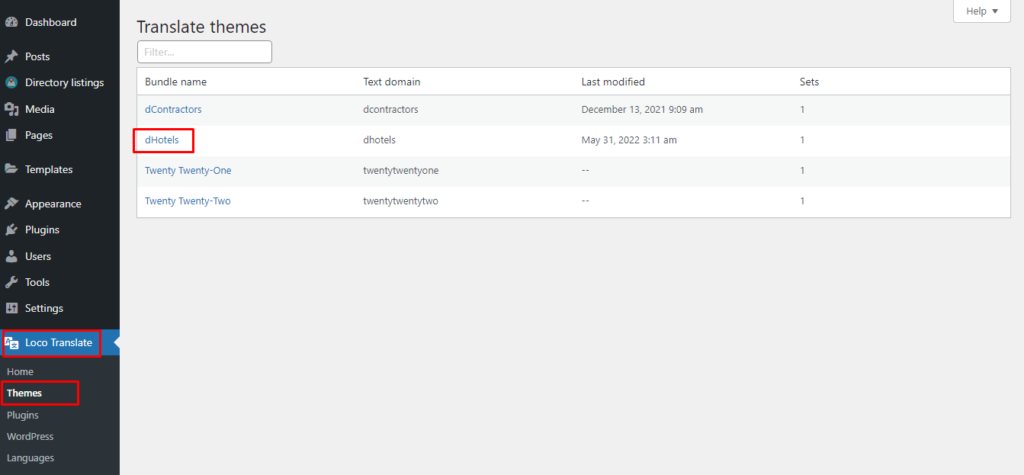 Step 2: Select the Theme or Plugin you want to translate from the “Loco Translate” menu.