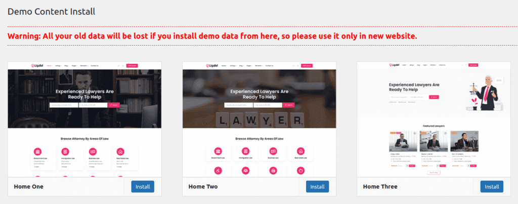 ** Note: Before proceeding, please remember that when you are done with the demo import, all existing settings and contents will be removed and replaced by the demo contents. So it is highly recommended that you should only do this on a fresh site. **