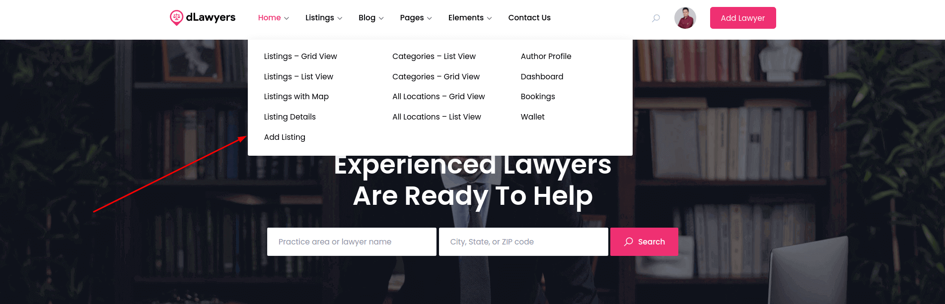 Here I used the CSS class multi-column-menu which turns the submenu items into Multi Column. Also, I used another class hide-header which hides the title “Listings” and “Archives” inside the menu.