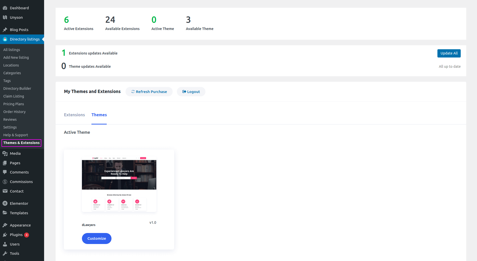 - From WordPress Admin Panel, Navigate to Directory Listings -> Themes & Extensions.
