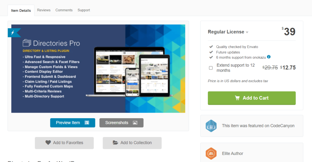 On the other hand, Directories Pro pricing starts from $39 per 6 months. However, you can extend the support up to 12 months for $29.75 (Now it’s now available only at $12.75)