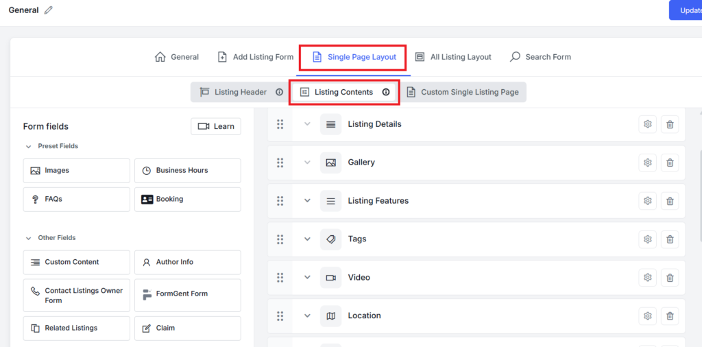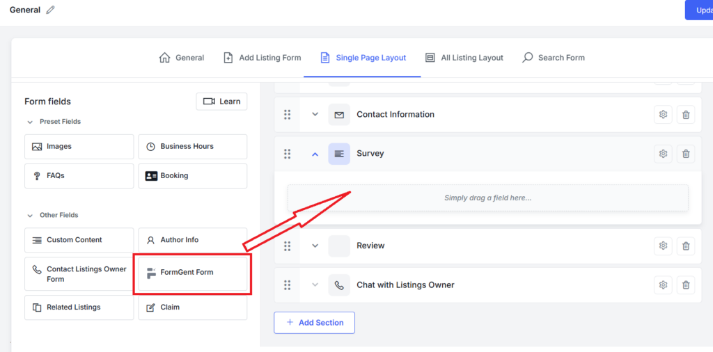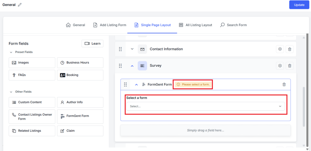 - Make sure the listing belongs to the directory where you added the FormGent form