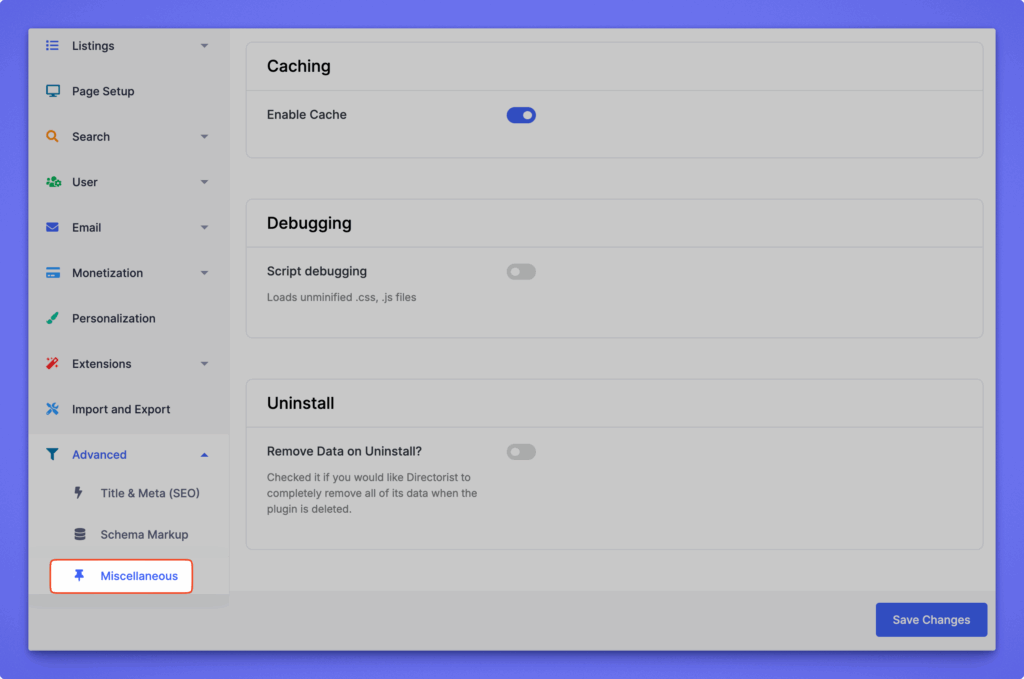 Path: WP Admin Dashboard → Directory Listings → Settings → Advanced → Miscellaneous
