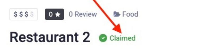 B) No one can claim this listing again once its claim from an owner is approved. Claim Listing widget for this listing will be hidden. C) A nice badge will be displayed beside the title of the claimed listing. The text of the badge is customizable. This will distinguish between claimed and unclaimed listings. - Pending: When a new claim is made, it will have a pending status. It means the admin has not reviewed the claim yet.