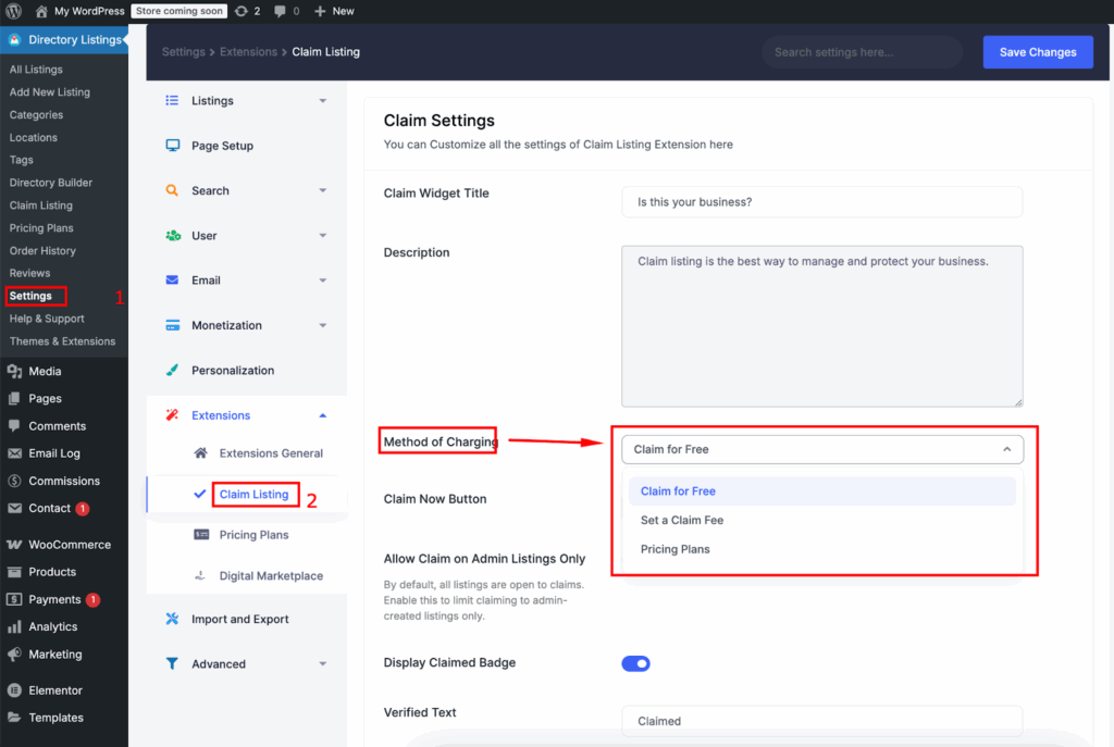 A claim for a listing can be either for free or paid. In order to enable paid listing and pricing plan etc. to work, you need to enable monetization first. Go to Directory Settings > Monetization Settings and Set ‘Enable Monetization Feature’ to Yes.