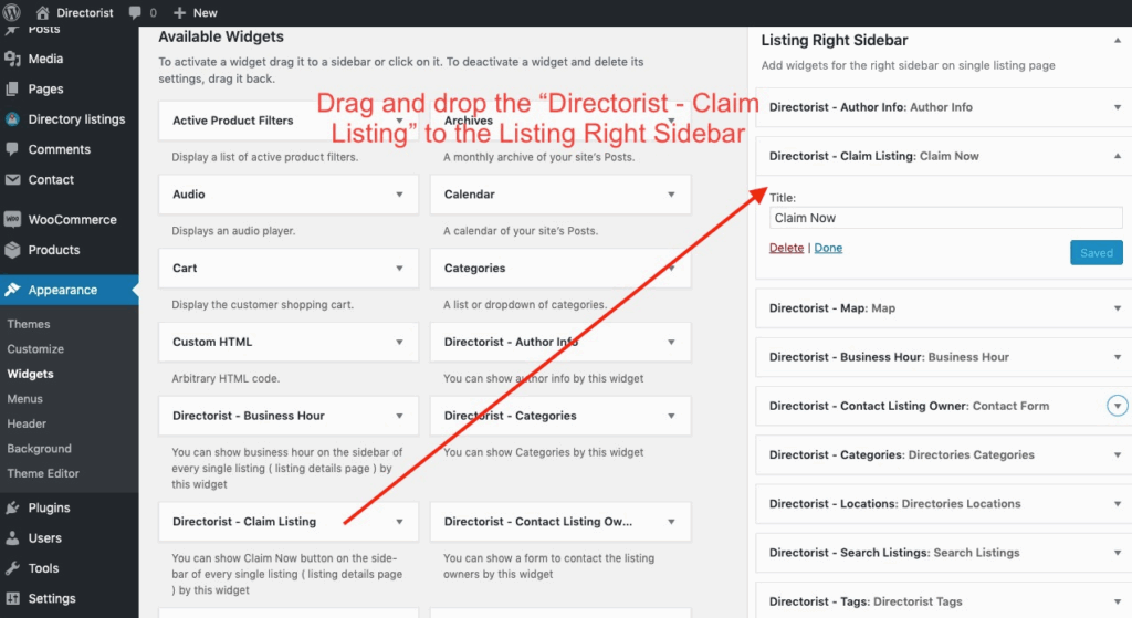 Directorist Claim Listing will create a widget called Directorist – Claim Listings for displaying information about claim listings. Follow the steps to display the claim listing.