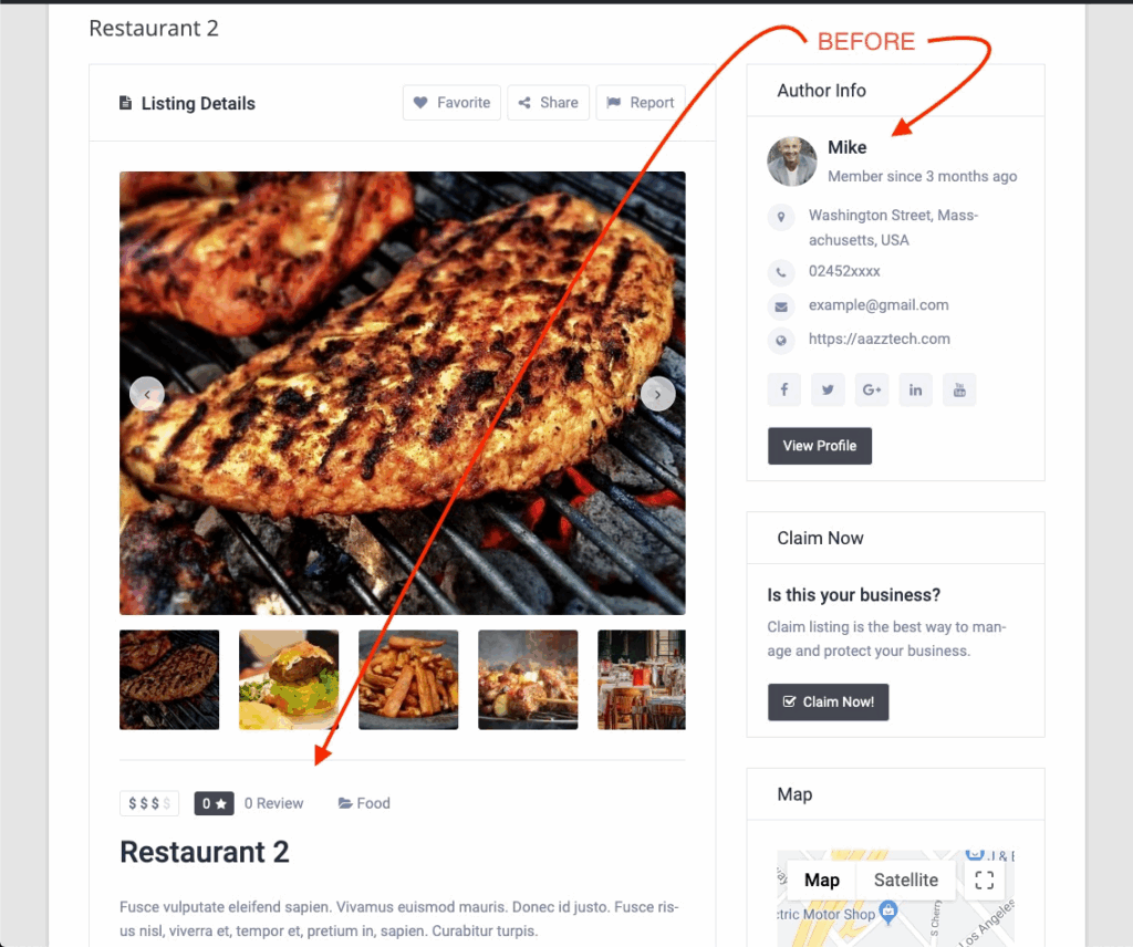 Claim Listing Widget: Business Owner will be able to claim the ownership of a listing/business by clicking the ‘claim now’ button. A nice form will show in a pop-up modal when a user clicks on the claim now button. Optionally, you can test the claim listing functionality by clicking the ‘claim now’ button.