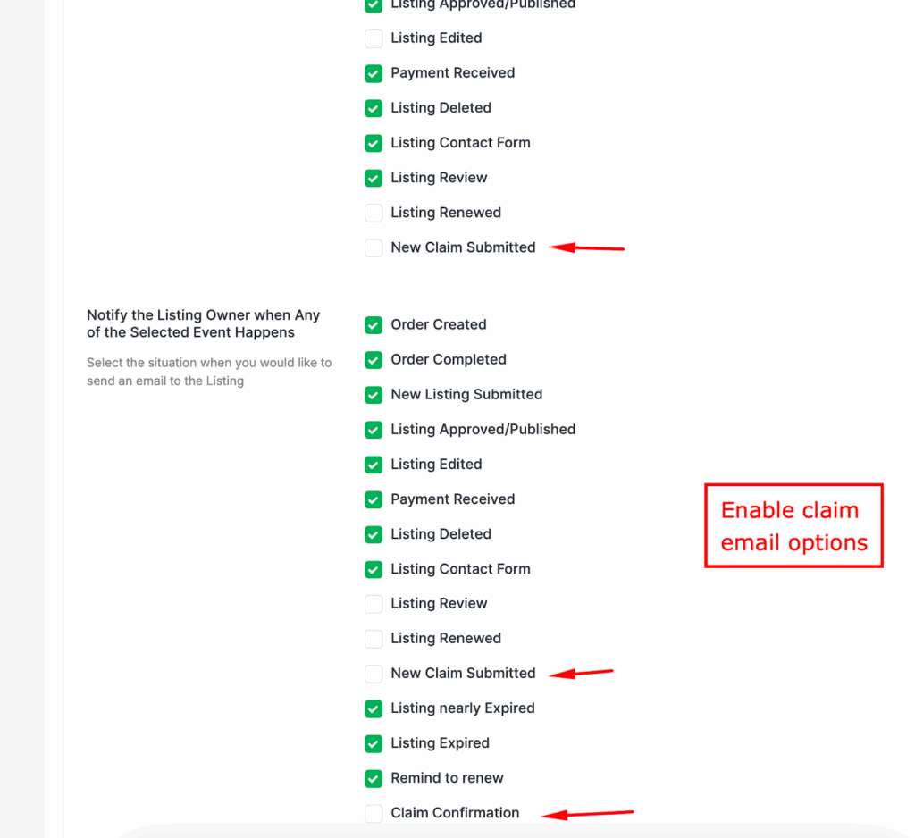 | Allow Claim on Admin Listings Only | Enable this to limit claiming to admin-created listings only. | Action “Toggle” |