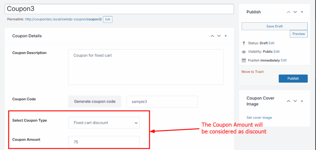 - Coupon Type – Select from Percentage Discount, Fixed Cart Discount, or Fixed Product Discount.