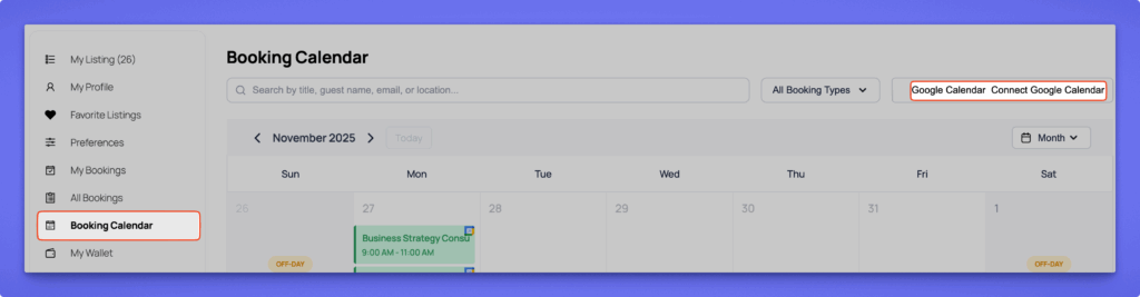 Once setup is complete, your bookings will automatically appear in Google Calendar, keeping your schedule up-to-date and preventing double bookings.