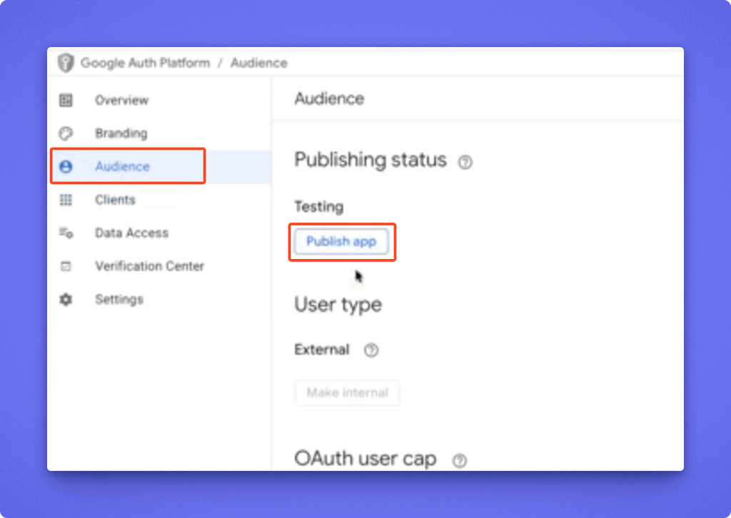 - Now you have to publish the app. Go to Audience and Hit the Publish app button.