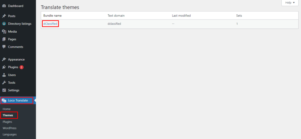 Step 2: Select the Theme or Plugin you want to translate from the “Loco Translate” menu.