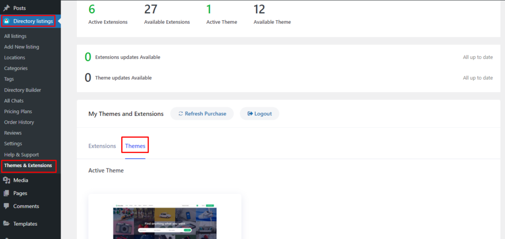 - From WordPress Admin Panel, Navigate to Directory Listings -> Themes & Extensions.
