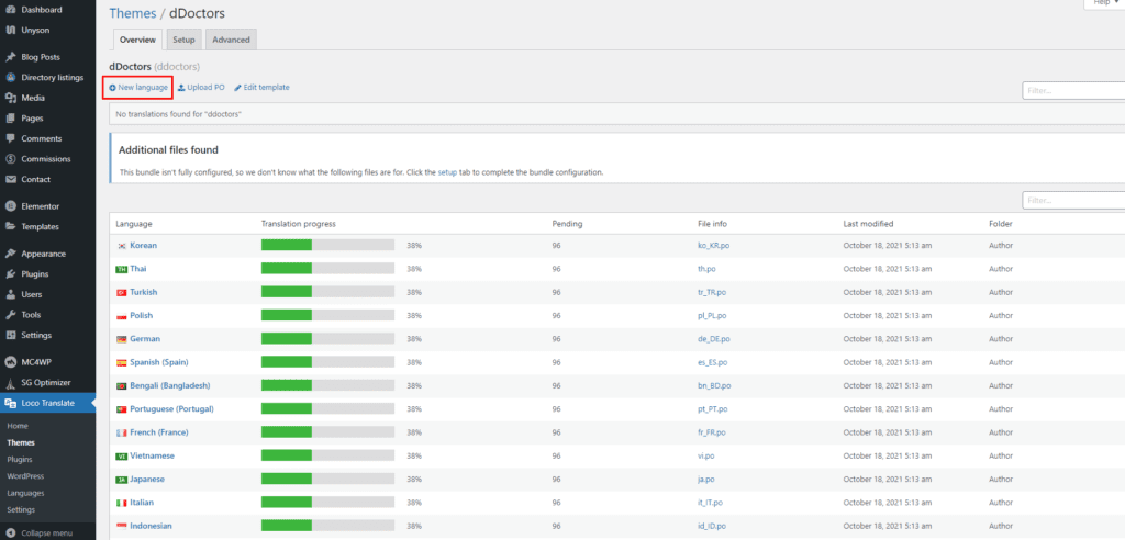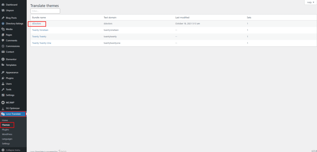 Step 2: Select the Theme or Plugin you want to translate from the “Loco Translate” menu.