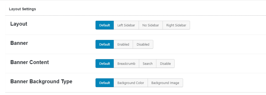You can override the above settings for Individual Pages. When you go to Add New or Edit page, you can find similar settings like above under the “Layout Settings” box. If you change any settings from here, this will take priority. If you choose to default, settings from the Theme Options -> Layout Defaults (described above) will be used.