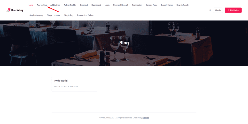 Now it’s your visitor’s turn to add classified ads. When a user lands on your website, s/he would see a navigation bar where the user can add the classified ads from. Generally, the user needs to click on the “Add Listing” button to submit his or her ad.