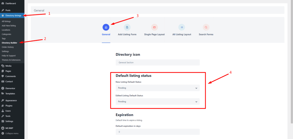To keep the listing status pending while a user submits an ad, you can go to Directory Listings > Directory Builder > General > Default listing status > Change to ‘Publish’ from ‘Pending’.