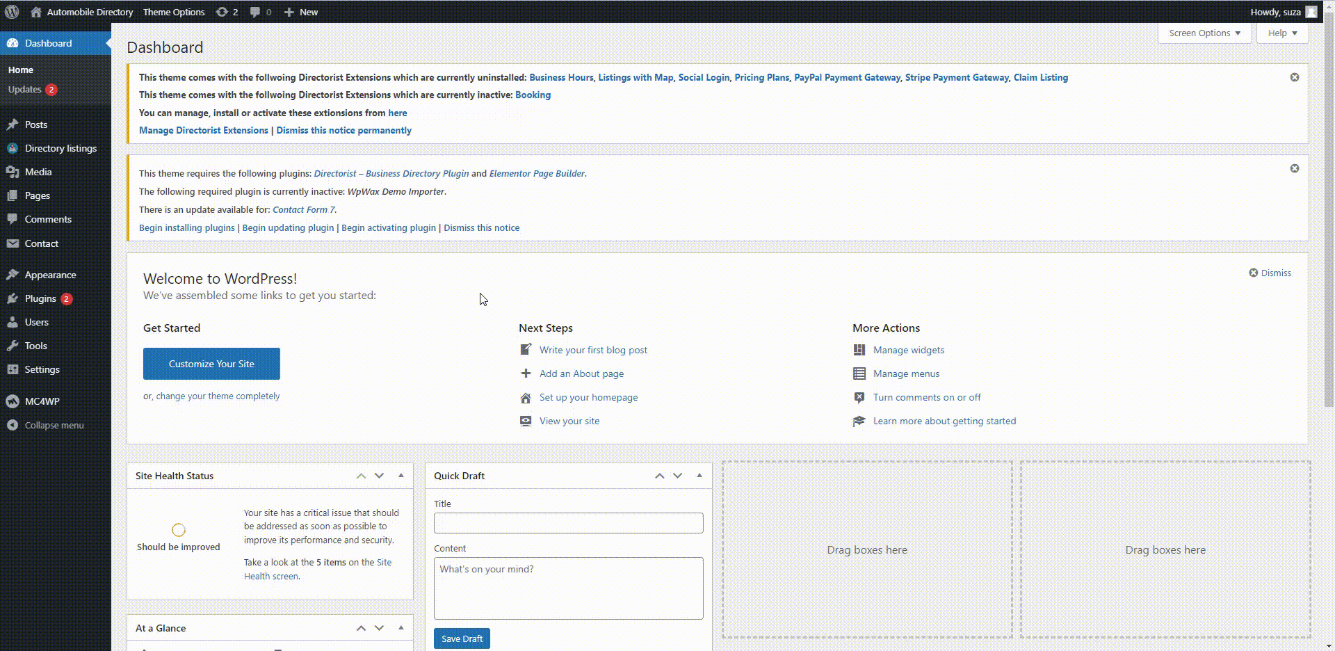 - The theme itself will recommend you to install Directorist and few more essential plugins.