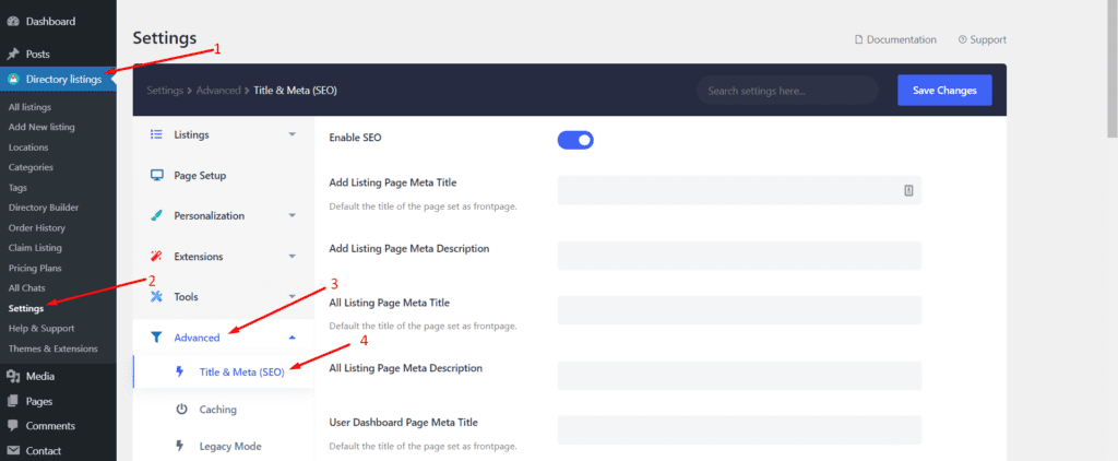 Next, improve the SEO of your website using the in-built fields on Directorist. You can also use other free plugins such as Yoast SEO or Rank Math SEO.