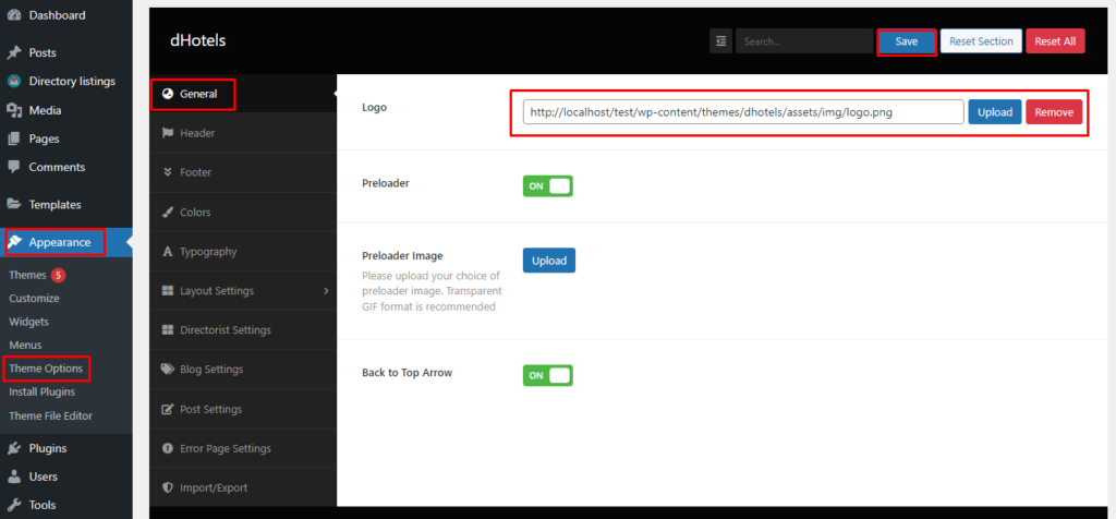 To change the Header related settings, please go to Appearance -> Theme Options. Then go to the Header tab. Following features are available:
