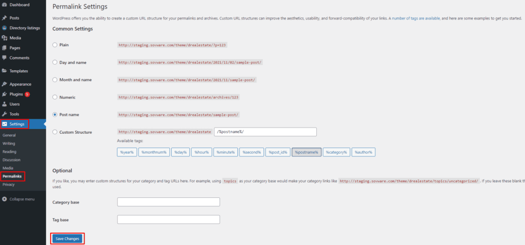 After changing the settings, click on the Save Changes button.