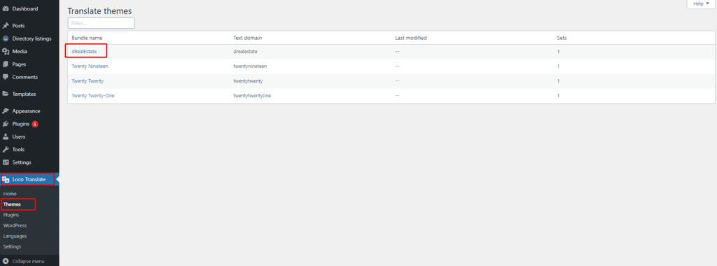 Step 2: Select the Theme or Plugin you want to translate from the “Loco Translate” menu.